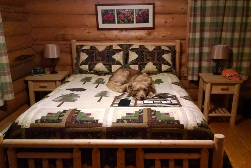 Owl's Nest sleeps six with queen size bed in the master bedroom, extra-long twin beds in the upstairs bedroom, and queen size sofa