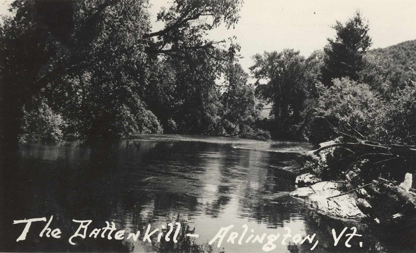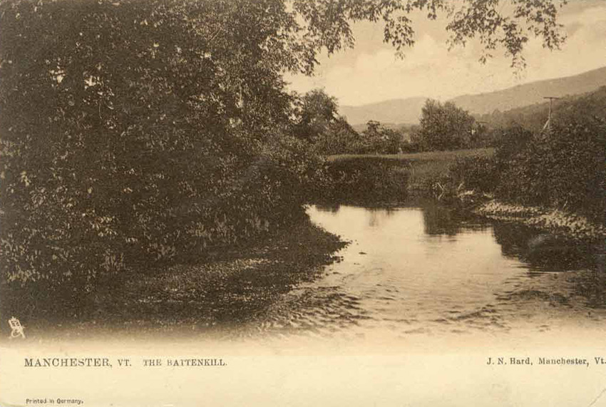 - Row 6: "The Battenkill, Arlington", Genuine sepia postcard printed in Germany, "Manchester, Vt. The Battenkill" and "Art Publishers to Their Majesties the King and Queen"